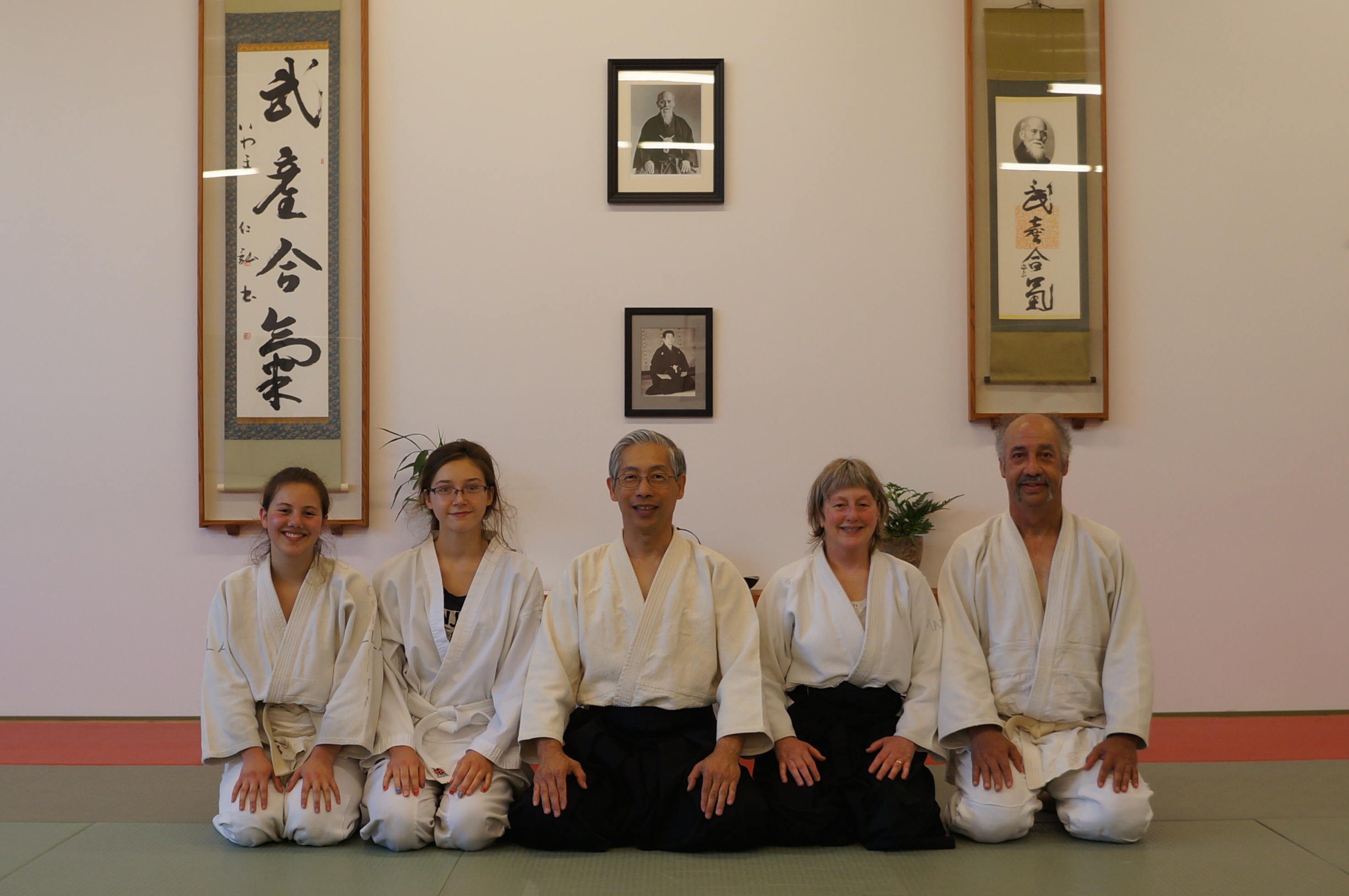 [Picture 3, Robert Nadeau at City Aikido, 1 July 2014, with: MG,Jr., Ella, Gretchen, Vu]