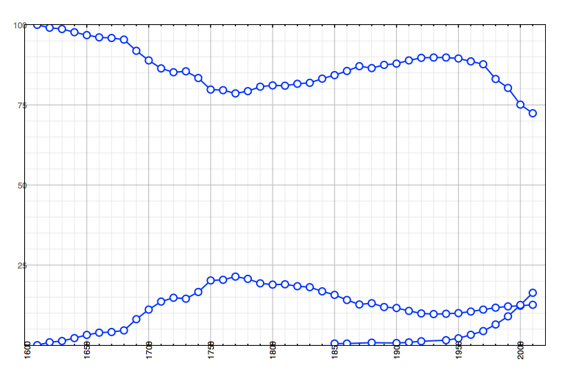 U.S. 3-Group Population Percentages B Published September 26, 2018 at 826 × 536 in The Changing American Population, 1610-2010