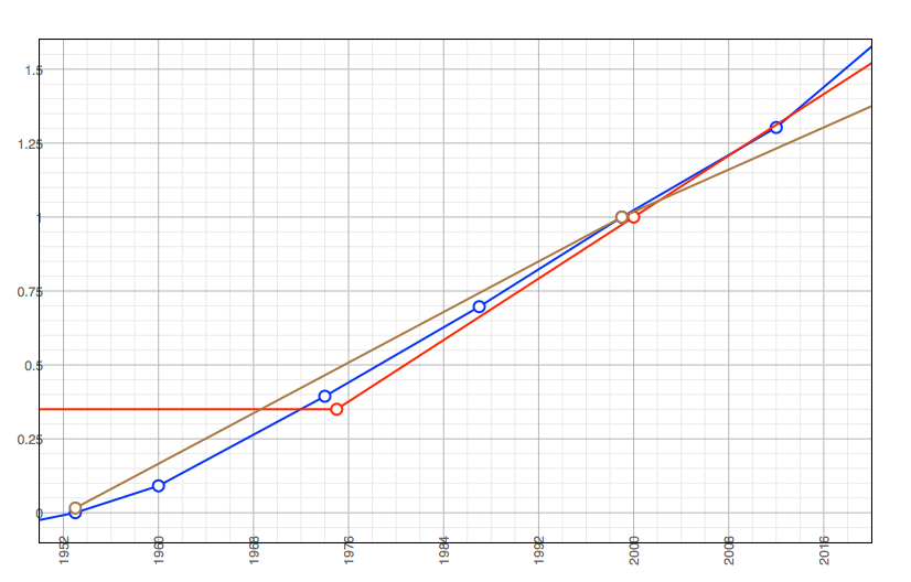 Pop & Oil as Temp rise, 1950-2020 Published May 31, 2019 at 826 × 528 in Population, Oil and Global Warming Population (blue), oil (brown) scaled to match temperature rise (red) above 14.7 C, 1950-2020, (see text, proportionalities)